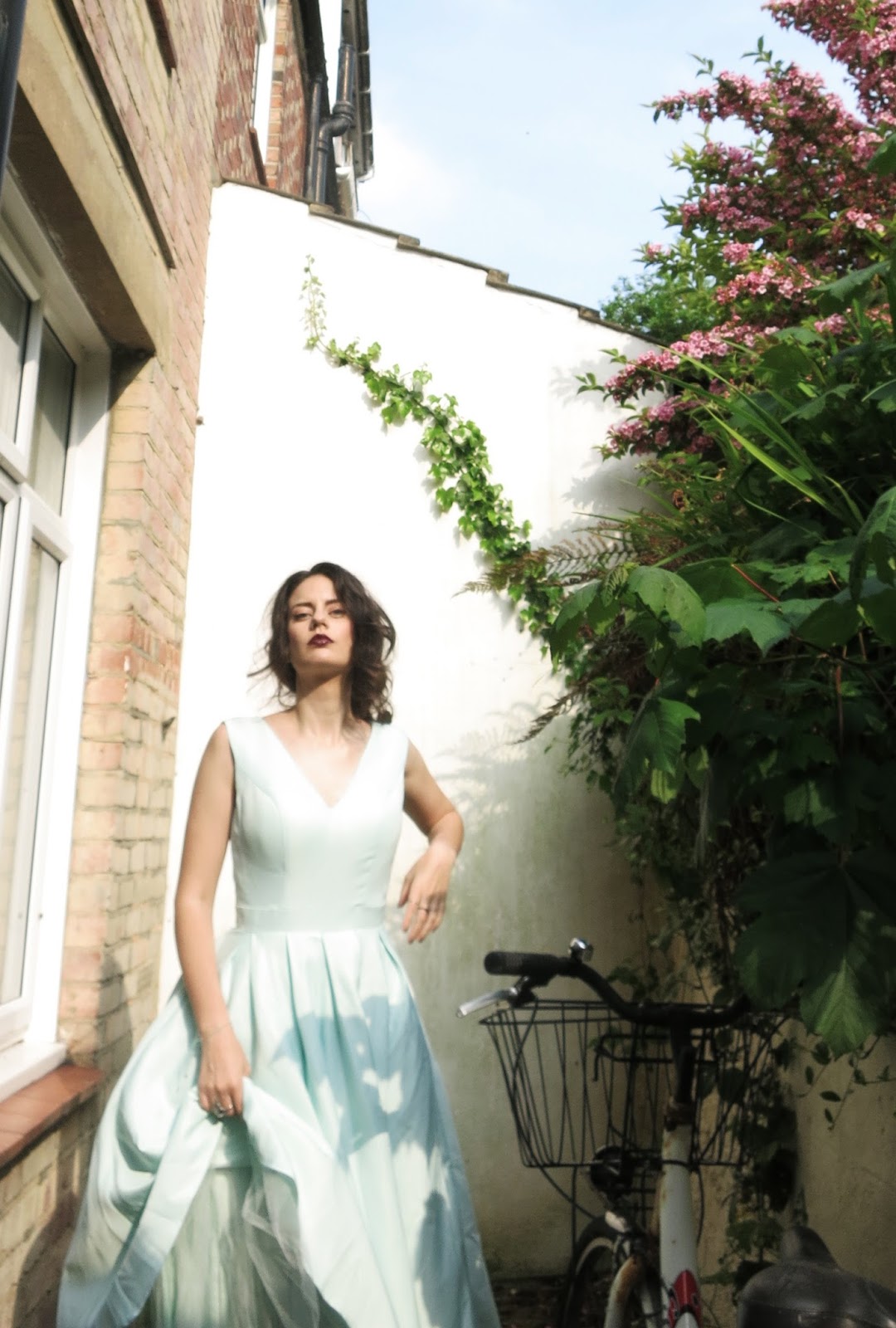 This look is really decadent, same for my backyard which is a jungle right now. Have I mentioned I love contrasts? This dress is gorgeous, very girly, with a puffy gown, the perfect fitting (it’s a size 6 UK) and with the skirt of a midi length.