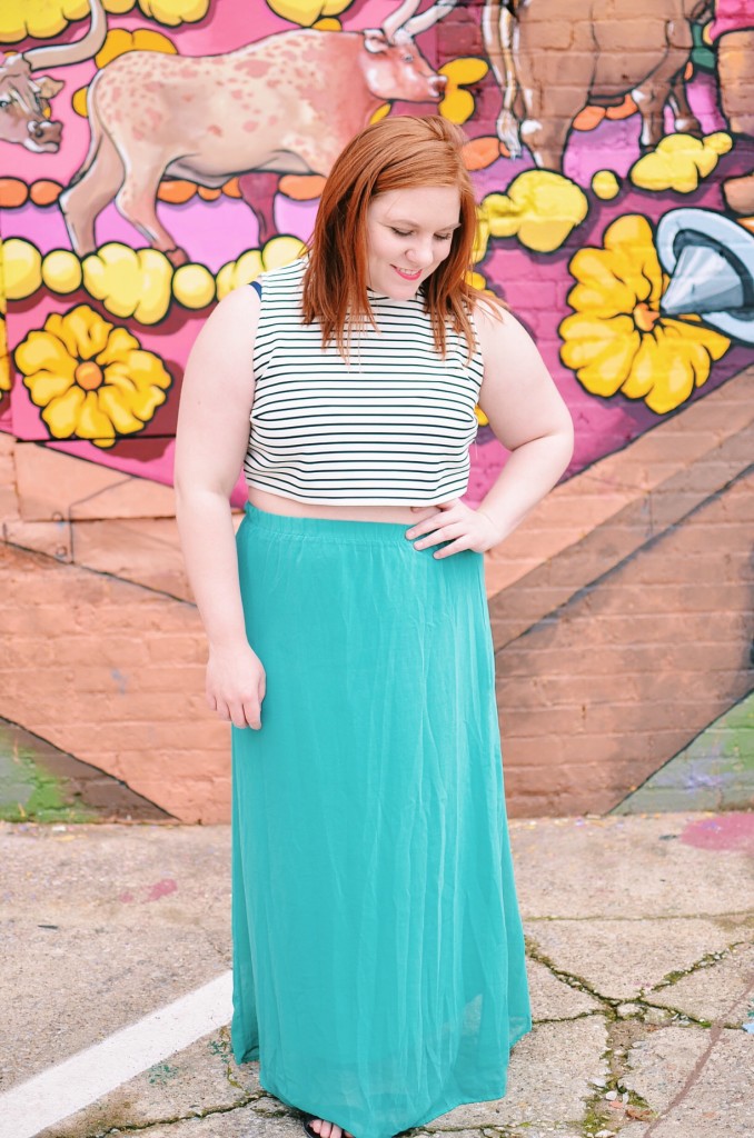 “These outfit photos are some favorites of mine for a couple of reasons. One, I mean, look at that mural. I shot these in my neighborhood, Deep Ellum. It’s right outside of downtown Dallas and it’s old and artsy and grungy and great. There’s never a shortage of live music every night. I was actually just at a show on a Tuesday! There’s a biker bar here, a burlesque lounge, several small music clubs, a candy store, the best barbecue and pizza in Dallas (Pecan Lodge! Serious Pizza!), a world famous tattoo shop (Elm Street!) and just about anything else you can think of. Including dozens of wall murals by local artists. Two, I shot these photos the weekend both of my sisters came down to stay a weekend with me. My youngest one is still in high school and lives at home two hours away, and my middle sister is in grad school and lives an hour and a half away in the opposite direction. I’ve only lived in Dallas for a little over a year so it made me proud to be able to host them both in a place I can call my own!”